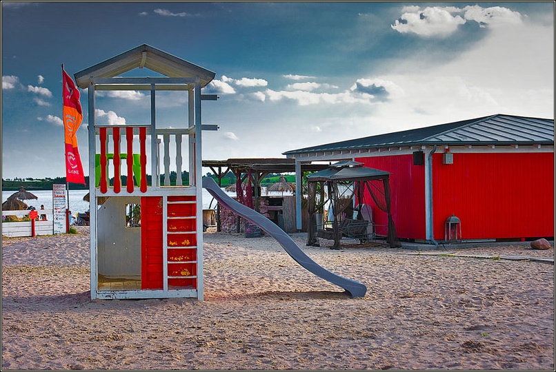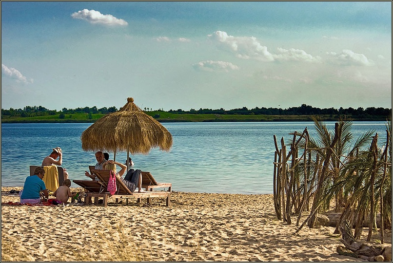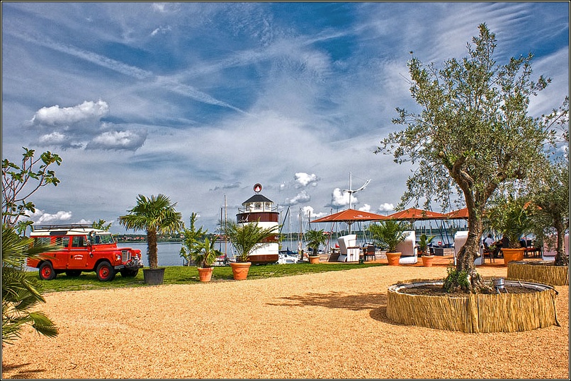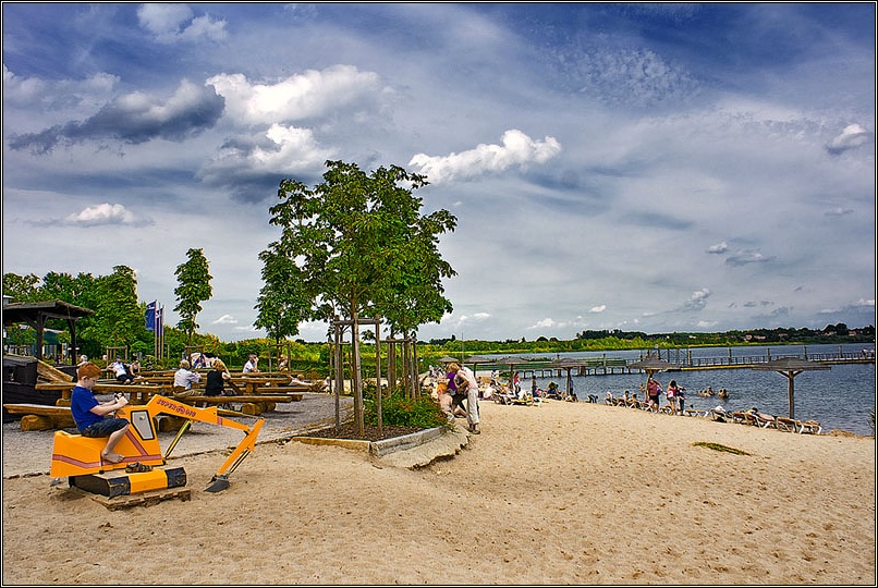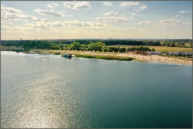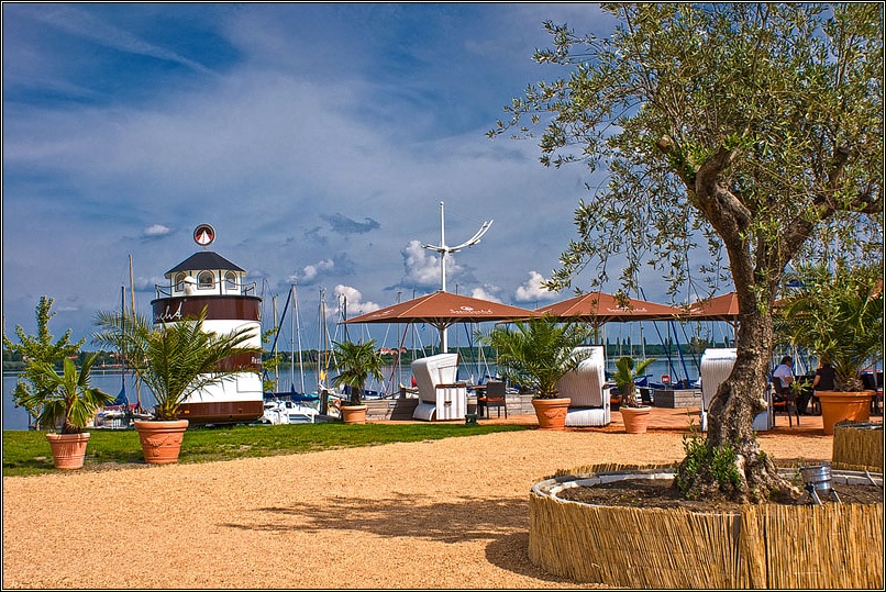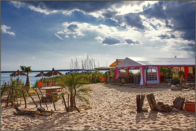Wunderschöne Strandabschnitte, die völlig unterschiedlich gestaltet sind, mal tropisch, mal eher an die dänische Ostsee oder Friesland erinnernd als auch völlige Ruhezonen, die aber trotzdem alle frei zugänglich sind, säumen den Rand der Goitzsche. Tolle Lokale und auch umfassende Angebote für Umweltaktivisten haben sich hier angesiedelt- Da die ursprüngliche Region durch den jahrelangen Raubbau ihre eigentliche Identität eingebüßt hat, macht sich jetzt Multikulti breit. Eine bayrische Hütte darf auch nicht fehlen. Wem das zu geschmacklos ist, schaut eben auf`s Wasser 🙂 . Segelboote und kleine Yachten in den vielen Häfen lenken vom „Stilbruch“ ab.